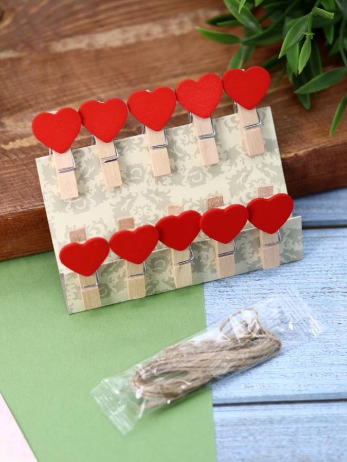 Прищепки декоративные 10шт Hearts красные ILIKEGIFT GH045-02