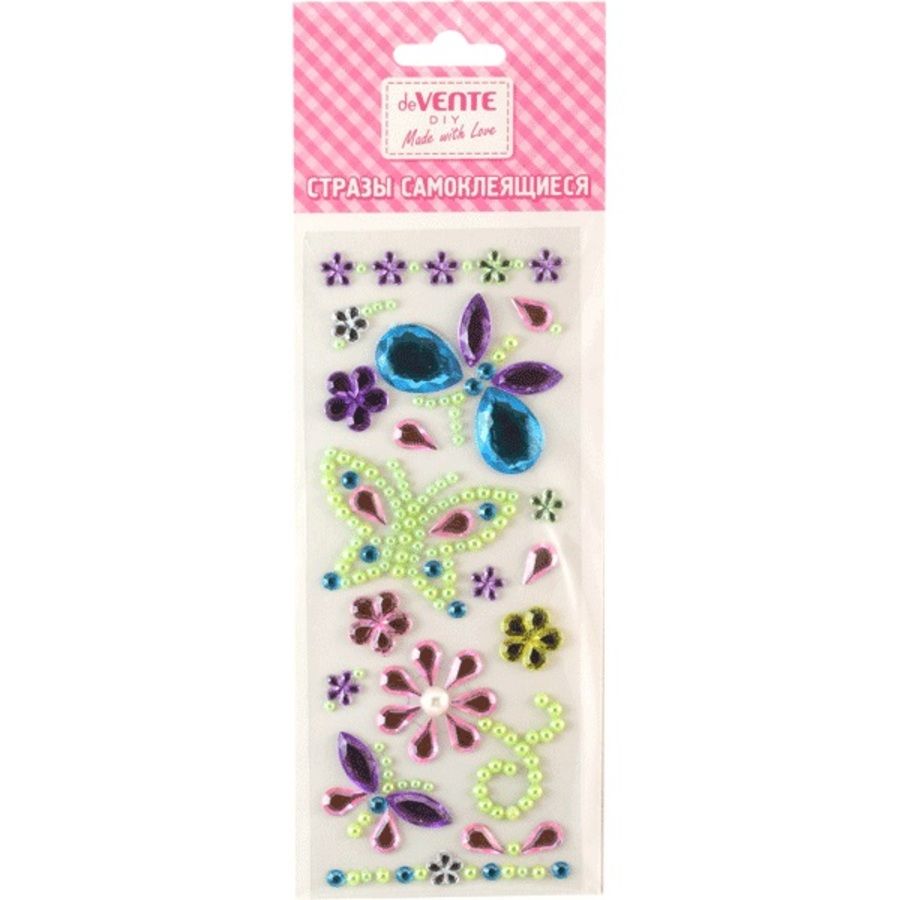 Стразы самоклеящиеся "deVENTE. Бабочки" акриловые, карточка 7,5x18 cм, цвета ассорти, в пластиковом пакете с блистерным подвесом