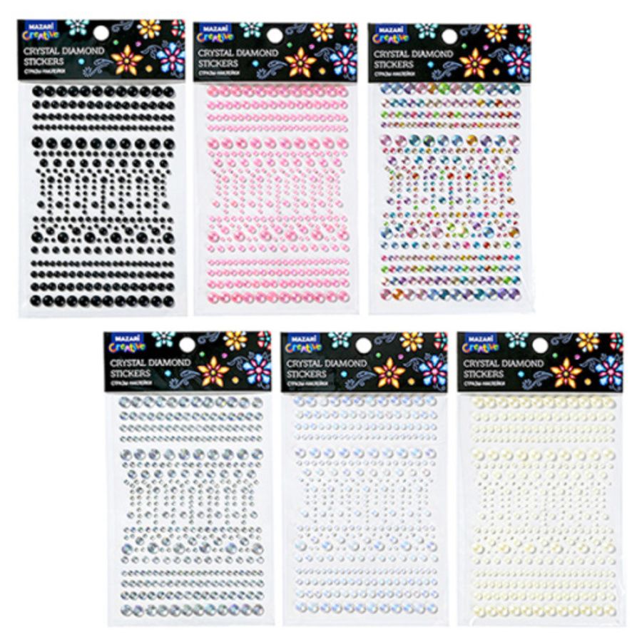 Стразы-наклейки пластиковые, 11*16.5 см, 6 дизайнов, ОПП-упаковка M-20451