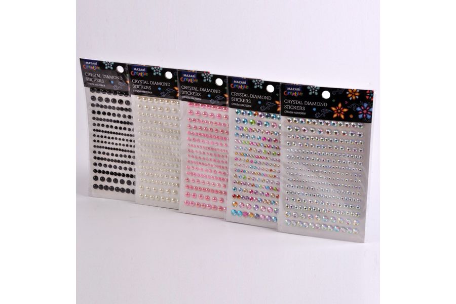 Стразы самоклеящиеся пластиковые ассорти 5 дизайнов 11х16,5см MAZARI M-20450