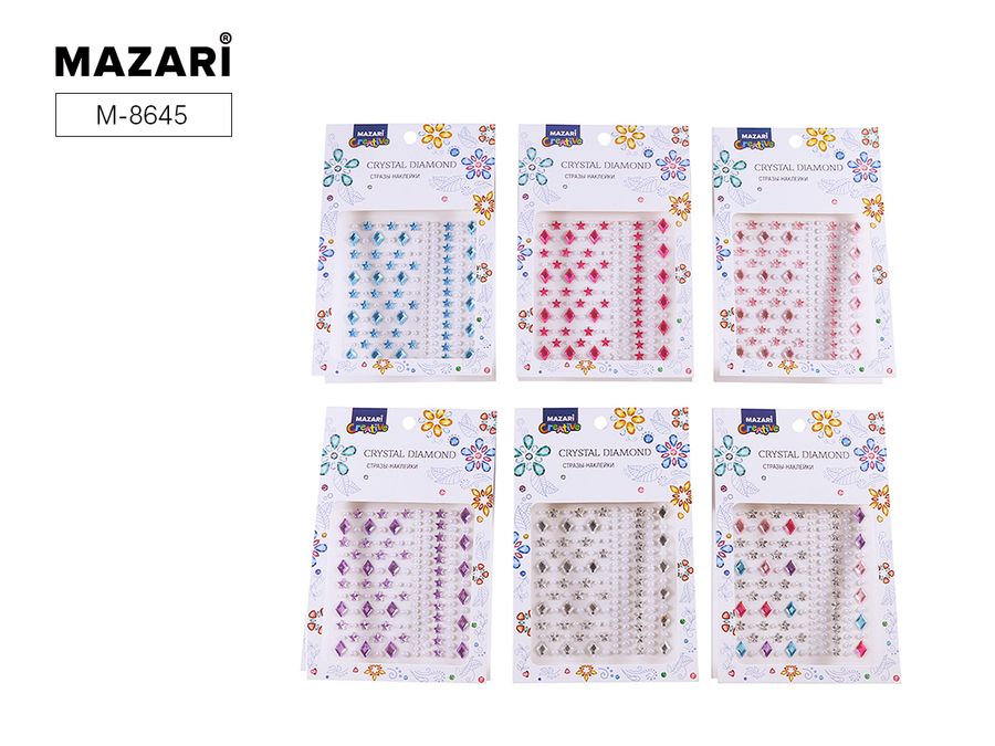 Стразы самоклеящиеся акриловые ассорти 6 дизайнов 10,4х16см MAZARI M-8645