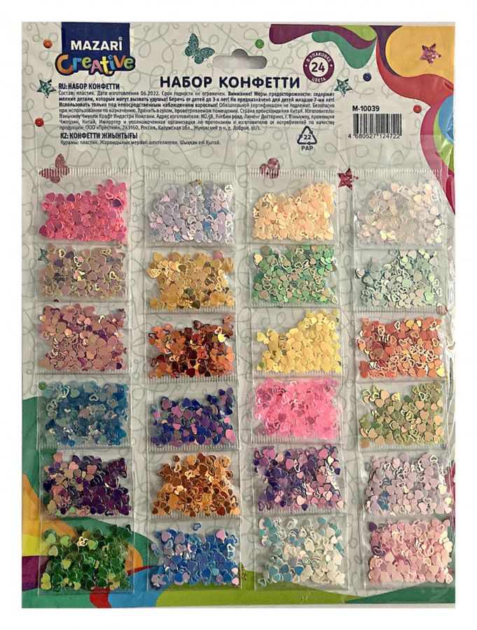 Конфетти 24цв 12 видов ассорти MAZARI M-10039