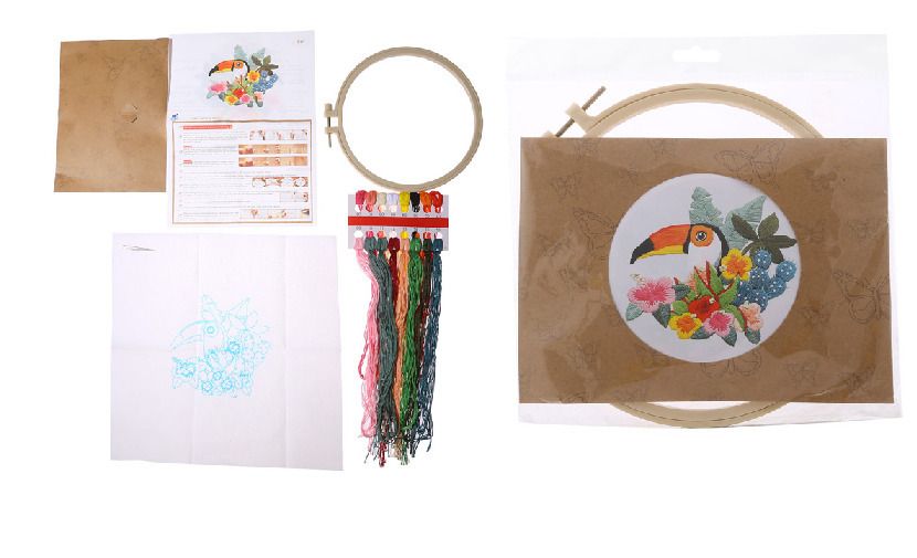 Набор для вышивания гладью 20 х 20 см, в ассортименте 5 дизайнов. В наборе: ткань с нанесением рисунка, металлическая игла, нитки, пяльцы, инструкция, ОПП- упаковка без подвеса