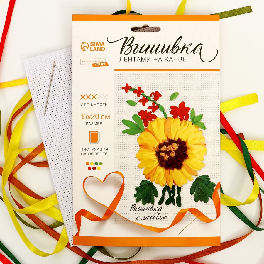 Вышивка лентами — это вид объёмной вышивки, с помощью которой можно создавать картины или декорировать предметы гардероба. Для работы вам потребуется: ножницы, пяльцы (в комплект не входят). Этапы создания картины Закрепите канву в пяльцах, натяните её. Вышивайте, ориентируясь на схему. Размер стежков сопоставляйте с количеством клеток на схеме и канве. Для закрепления ленты выведите её на изнаночную сторону и проденьте иглу под стежками вышивки. Комплектация набор лент; игла; белая канва; схема.