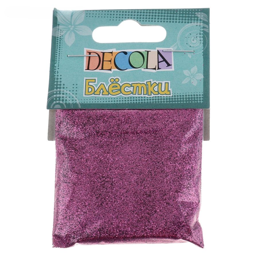 Декоративные блёстки (глиттеры) - металлизированные частицы разных размеров и форм, окрашенные во всевозможные цвета. Глиттеры вручную замешиваются в лаки, клея или другое связующее. С помощью полученных смесей можно создать интересные эффекты на различных поверхностях и придать им невероятный блеск. Применяются в декоративных работах по художественной росписи изделий из дерева, бумаги, ткани, стекла, керамики и т.п., при создании украшений и подарочной упаковки, в дизайне ногтей, татуаже, боди-арте. Состав: глиттеры полиэстровые. Вес упаковки: 20 г.