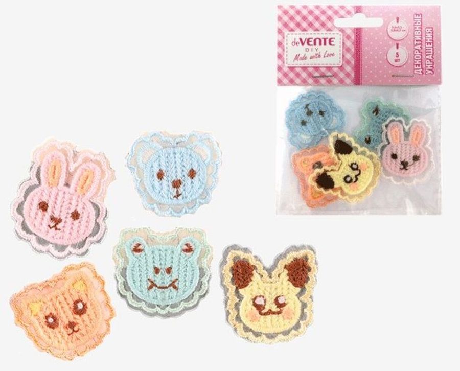 Декоративные украшения "deVENTE. Cuties" тканевые, от 36x35 мм до 38x42 мм, 5 шт, ассорти дизайнов, в пластиковом пакете с блистерным подвесом