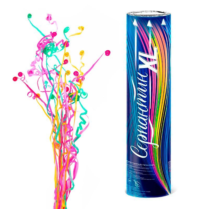 Хлопушку ручную «Серпантин XL» легко использовать на любых праздничных мероприятиях. Простота запуска, яркий полет серпантина длиной 6 метров несомненно поразит всех гостей! Данную хлопушку можно использовать даже детям, самые находчивые даже могут придумать игру Наполнитель – бумажный разноцветный серпантин длиной 6 метров.