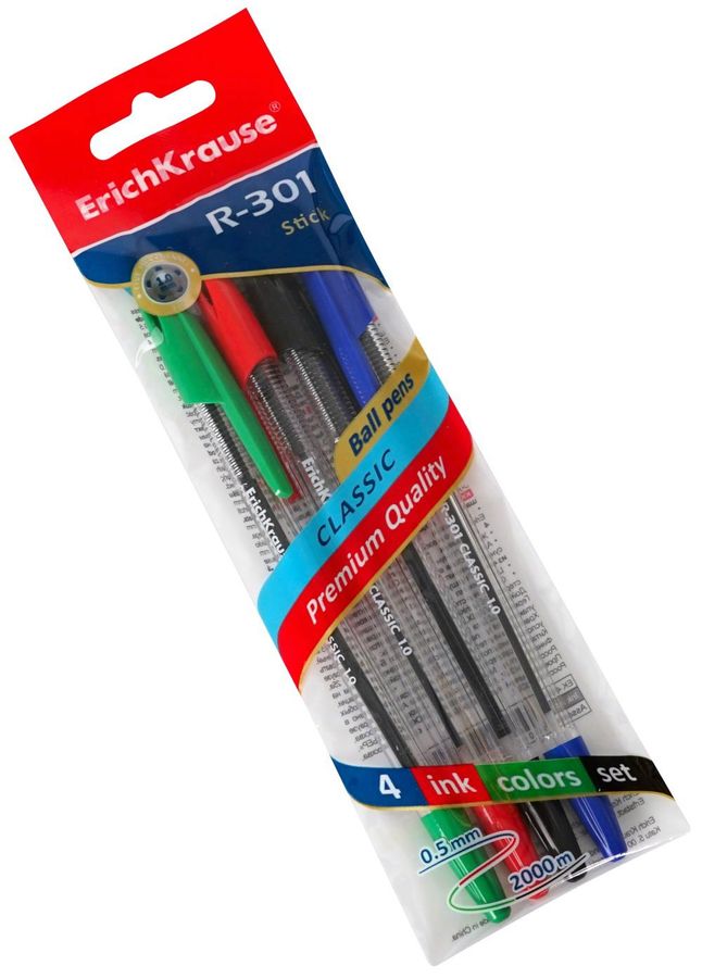 Ручка шариковая, набор 4 цвета ЕК R-301 Classic Stick 44593