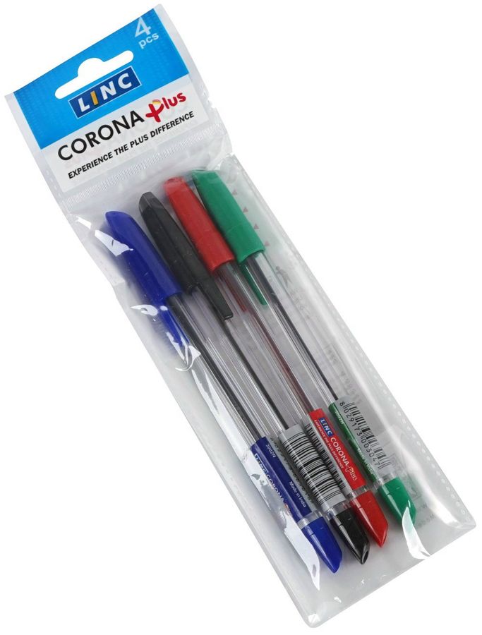 Ручка шариковая, набор 4 цвета Corona Plus 0,7мм прозр.корпус 3002N 4