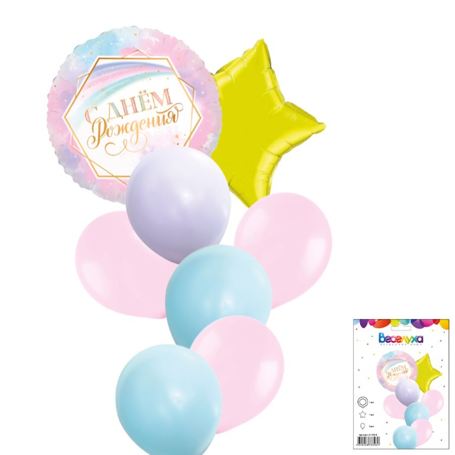 Комплект воздушных шаров "Ванильное небо" отлично подойдет для оформления праздника в честь дня рождения или в качестве самостоятельного подарка. Для оформления композиции можно использовать как гелий, так и воздух. Наборы шаров "Веселуха" - это готовое решение для любого поздравления и праздника, экономит ваше время и силы.