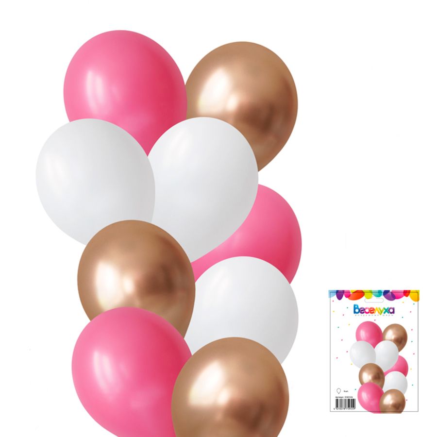 Комплект воздушных шаров "Розовый и золото" отлично подойдет для оформления и подарка ко Дню рождения, или в качестве поздравления с любым другим праздником или событием, а также вовсе без повода. Стильное сочетание шаров в розовых и золотом оттенках сделает декор вашего праздника незабываемым. Для оформления композиции можно использовать как гелий, так и воздух. Тематики для оформления: на свадьбу, день рождения, фотосессию в стиле "Барби", Новый год, 14 февраля, 8 марта, украшение интерьера.. Подойдет как подарок ребенку, например дочке, а также маме, женщине коллеге, подруге, девушке, бабушке, тете, сестре. Наборы шаров "Веселуха" - это готовое решение для любого поздравления и праздника, экономит ваше время и силы. В наших наборах используются только качественные шары, производство Вьетнама, Турции, Испании, Италии, России, Китая, поэтому наши комплекты отличаются высоким качеством и безопасны в использовании.