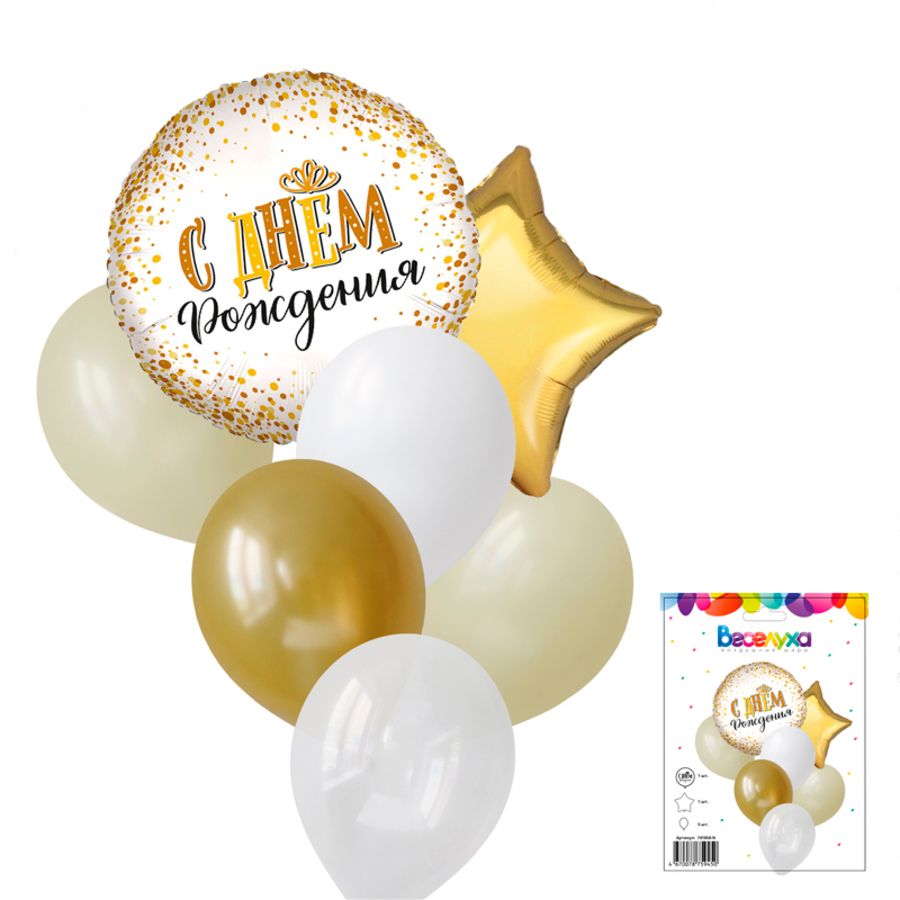 Комплект воздушных шаров "С Днем Рождения сияющий" отлично подойдет для оформления дня рождения или в качестве самостоятельного подарка. Классическое сочетание оттенков подходит для поздравлений для него и для нее. Для оформления композиции можно использовать как гелий, так и воздух. Наборы шаров "Веселуха" - это готовое решение для любого поздравления и праздника, экономит ваше время и силы.