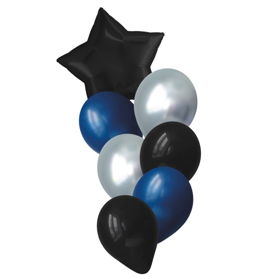 Комплект воздушных шаров "Ночное сияние" отлично подойдет для оформления и подарка ко Дню рождения, или в качестве поздравления с любым другим праздником или событием, а также вовсе без повода. Стильное сочетание темных и стальных оттенков сделает декор вашего праздника незабываемым. Для оформления композиции можно использовать как гелий, так и воздух.