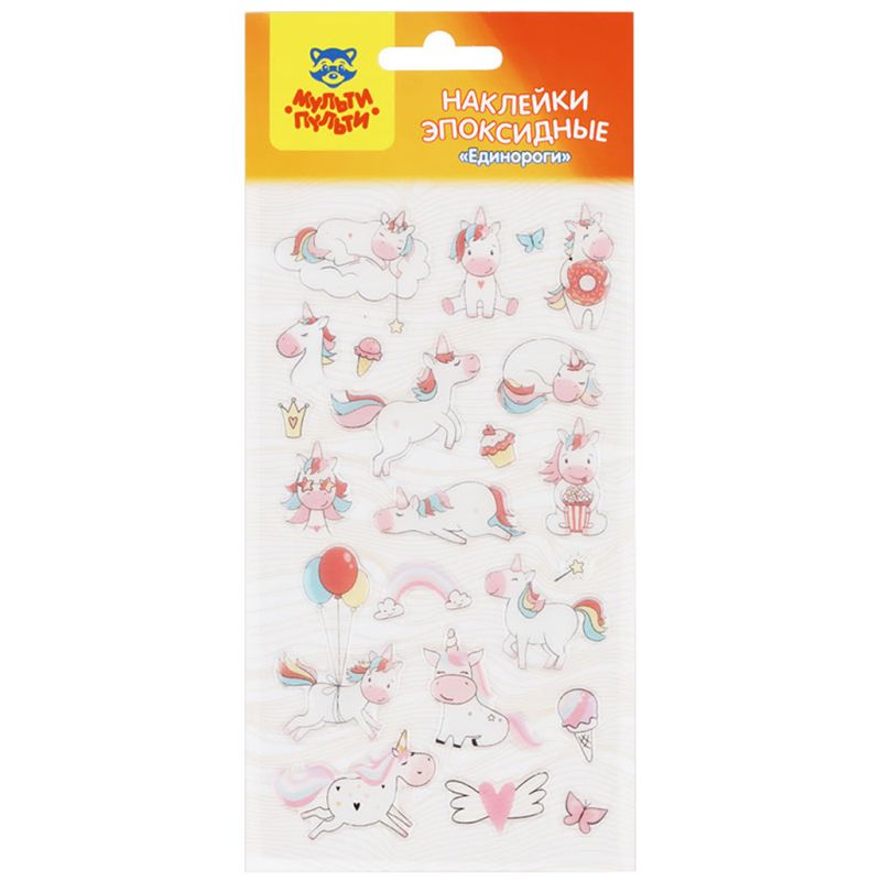 Эпоксидные наклейки «Единороги» − это отличный материал для творчества и игры. В наборе «Мульти-Пульти» 22 наклейки, размер листа 110*220 мм. Наклейки можно использовать для украшения и декорирования, а также для игр, оформления рисунков, открыток. Эпоксидные наклейки обладают выпуклой, прозрачной и гладкой поверхностью, приятной наощупь. Комбинируя наклейки из различных наборов «Мульти-Пульти» можно придумать целые творческие сюжеты! • Количество в наборе: 22; • Размер листа: 110*220 мм.