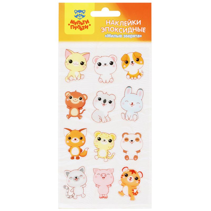Наклейки гелевые Мульти-Пульти "Милые зверята", 10*22см, 12 наклеек, инд. уп., европодвес ES_40045