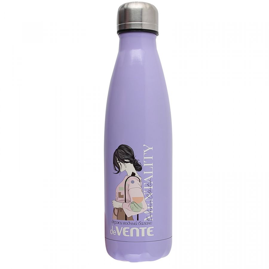 Бутылка-термос "deVENTE. Mentality" 500 мл, 26,3x7,6x7,6 см, 8-12 часов, нержавеющая сталь, с герметичной крышкой-пробкой, сиреневая
