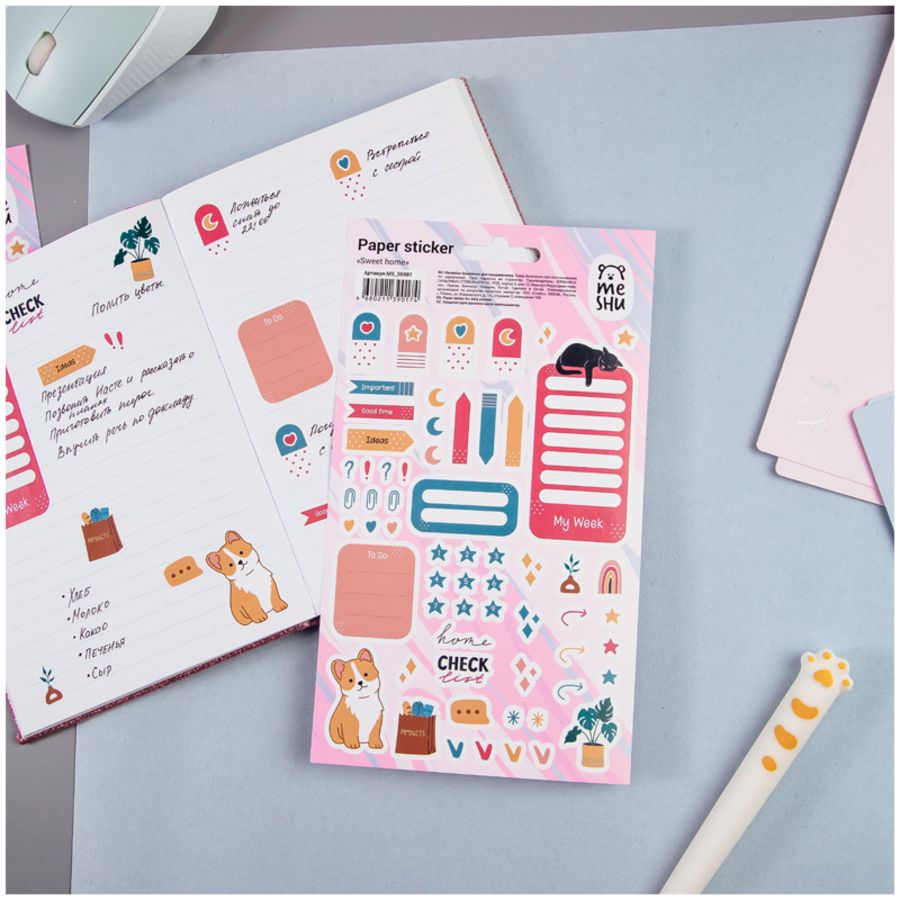 Бумажные наклейки для ежедневников MESHU Sweet home – отличный помощник в креативном оформлении записей в блокнотах и дневниках. Наклейки выполнены в милом дизайне. Лист с наклейками представлен в размере 12*21 см. В упаковке 40-60 наклеек, изготовленных из самоклеящейся бумаги. Бумажные наклейки подойдут также для украшения канцтоваров, открыток, поделок, телефонов, ноутбуков, предметов интерьера. Яркие современные дизайны от MESHU сделают творческий процесс увлекательным и подарят отличное настроение. Наклейки представлены с европодвесом.• Размер листа: 120*210 мм;• Количество наклеек: 40-60