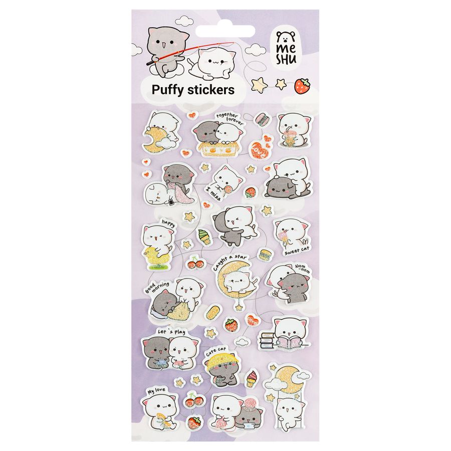 Яркие объёмные наклейки для декорирования MESHU идеально подходят для украшения любых поделок и отлично поднимают настроение. Наклейки выполнены в милом дизайне. Лист с наклейками представлен в размере 10*23 см. В упаковке от 10-15 объёмных наклеек, изготовленных из вспененных полимеров. Наклейки MESHU можно приклеить на открытку, подарочную упаковку, обложку ежедневника или тетради, предметы интерьера, мобильный телефон, ноутбук или любой другой аксессуар. Легко отделяются от основы и надежно держатся, а также их можно отклеить от одной поверхности и использовать повторно, ведь они многоразовые. Набор наклеек упакован в пакет с европодвесом.
