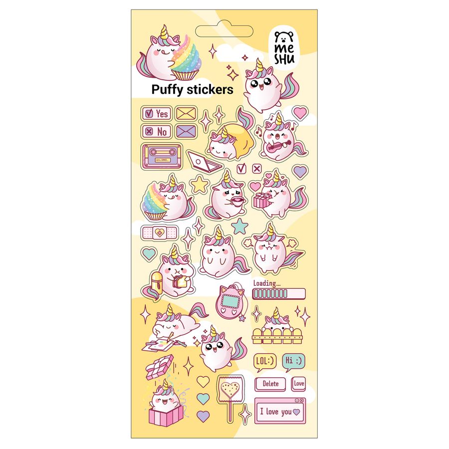 Яркие объёмные наклейки для декорирования MESHU идеально подходят для украшения любых поделок и отлично поднимают настроение. Наклейки выполнены в милом дизайне. Лист с наклейками представлен в размере 10*23 см. В упаковке от 10-15 объёмных наклеек, изготовленных из вспененных полимеров. Наклейки MESHU можно приклеить на открытку, подарочную упаковку, обложку ежедневника или тетради, предметы интерьера, мобильный телефон, ноутбук или любой другой аксессуар. Легко отделяются от основы и надежно держатся, а также их можно отклеить от одной поверхности и использовать повторно, ведь они многоразовые. Набор наклеек упакован в пакет с европодвесом.