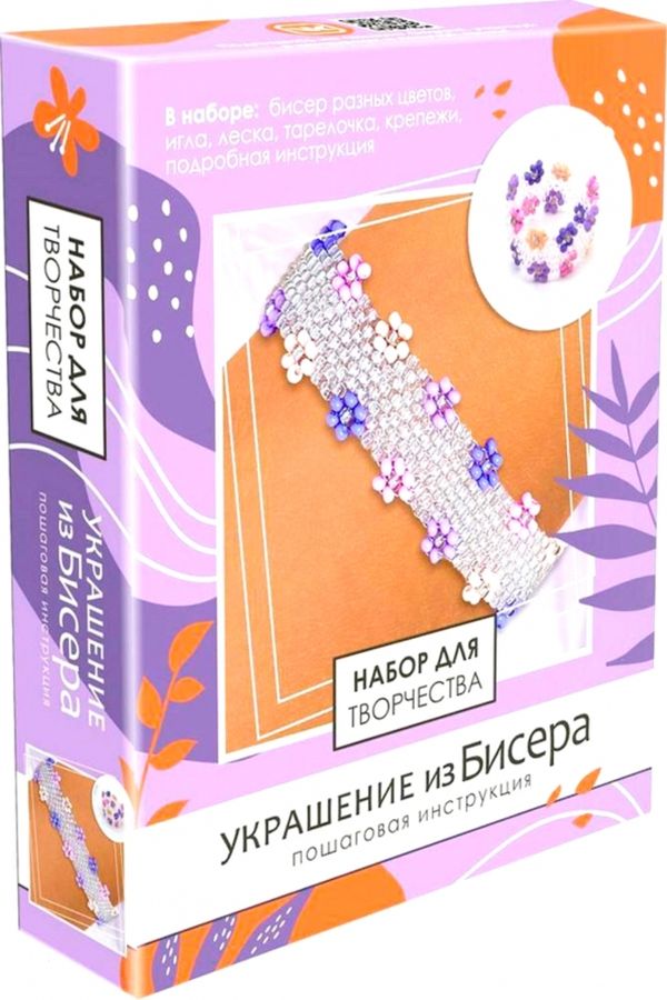 Создавайте и носите стильные и современные украшения из бисера. Иллюстрированная пошаговая инструкция с советами по собиранию и плетению. Просто и доступно, без сложных элементов. Вовлеченность в процесс и удовольствие от полученного результата! В наборе: бисер, игла, леска, кисточка, тарелочка, крепежи, цепочки, подробная инструкция. Не предназначено для детей до 3-х лет.