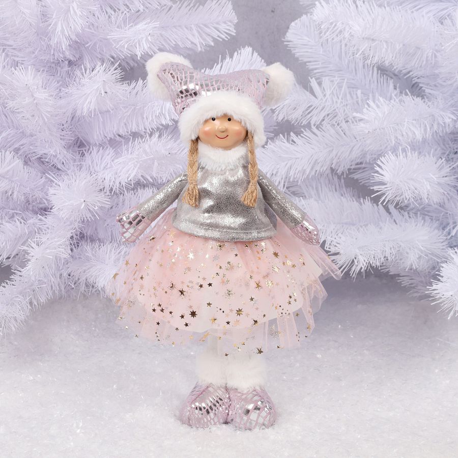 Украшение Кукла, Сказочная девочка, 38 см, текстиль, пластик, розовый/серебро, ЛЬДИНКА, 231386