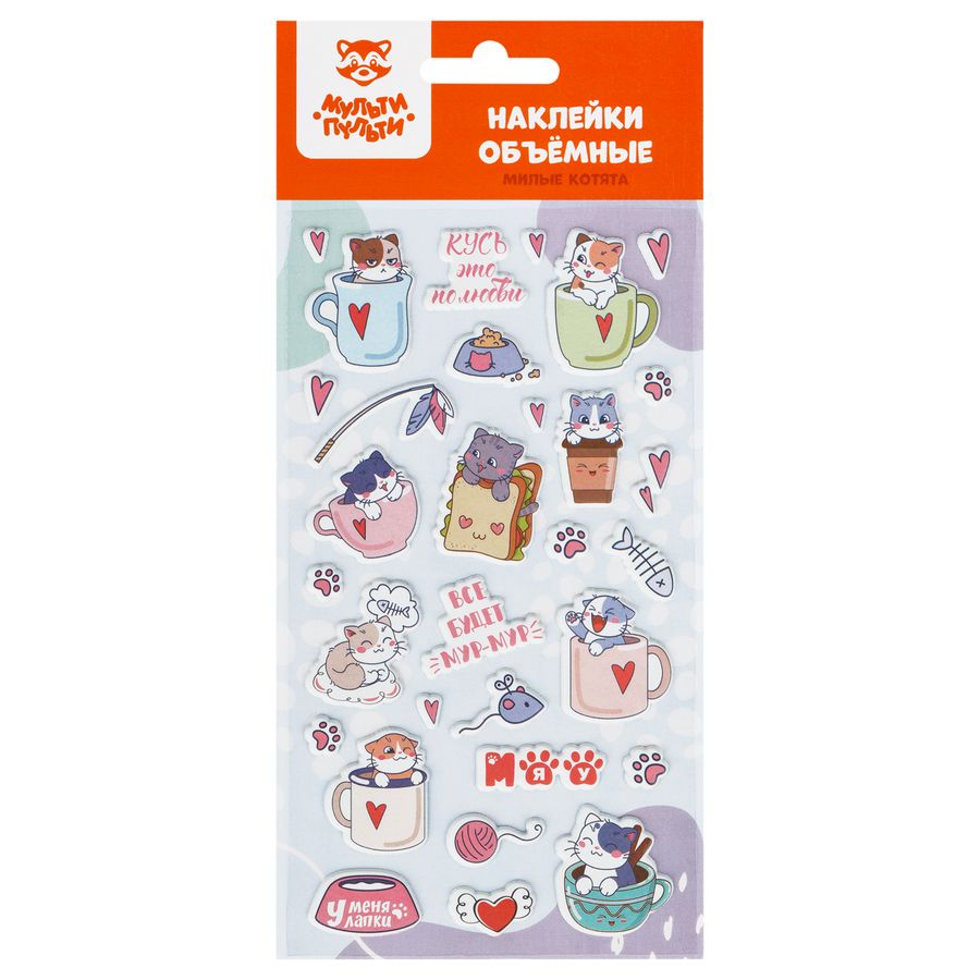 PS_59263 Наклейки 100х220мм Милые котята объемные