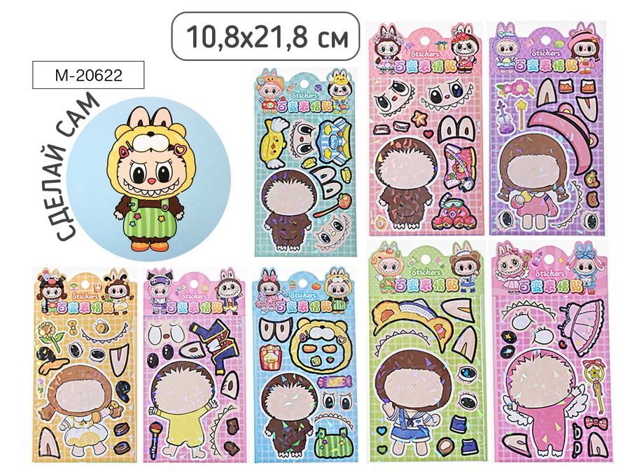 M-20622 Наклейки 110х220мм Зубастик сделай сам ассорти 8 дизайнов