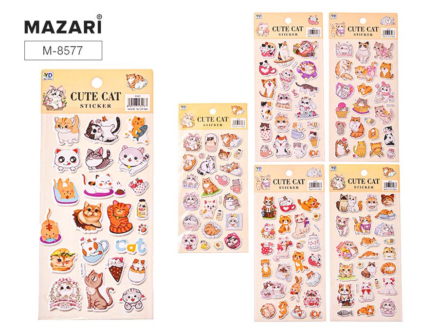 M-8577 Наклейки 100х220мм Котики ассорти 6 дизайнов