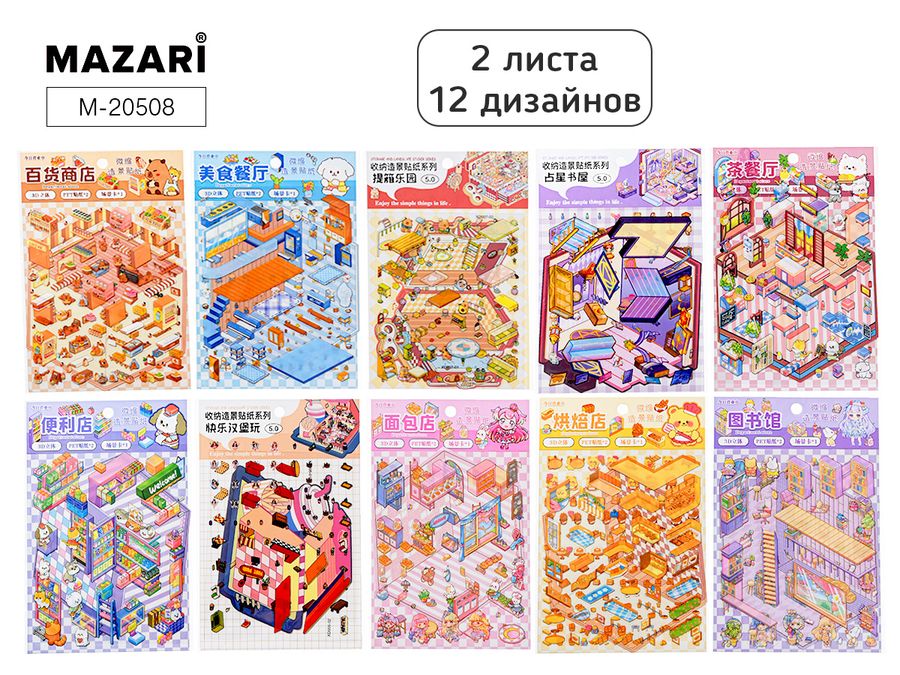 Наклейки РУМБОКС МИКС, 12.5*19 см, 1 локация, 2 листа с наклейками, 10 дизайнов в ассортименте, ОПП-упаковка
