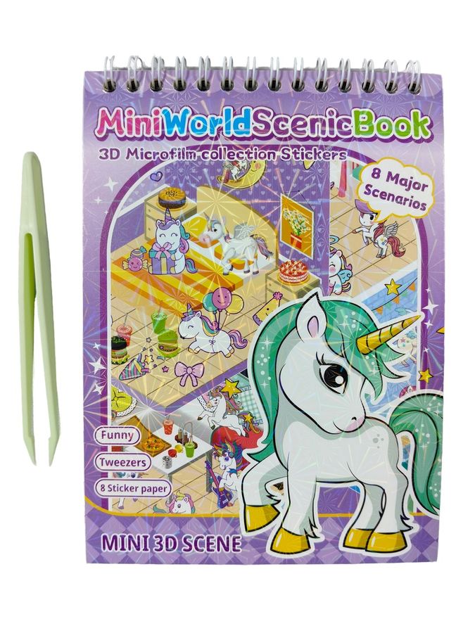 Наклейки РУМБОКС ЕДИНОРОГ, 13.3x19 см, 8 локаций, 8 листов с наклейками, пинцет в комплекте, 4 дизайна в ассортименте, ОПП-упаковка