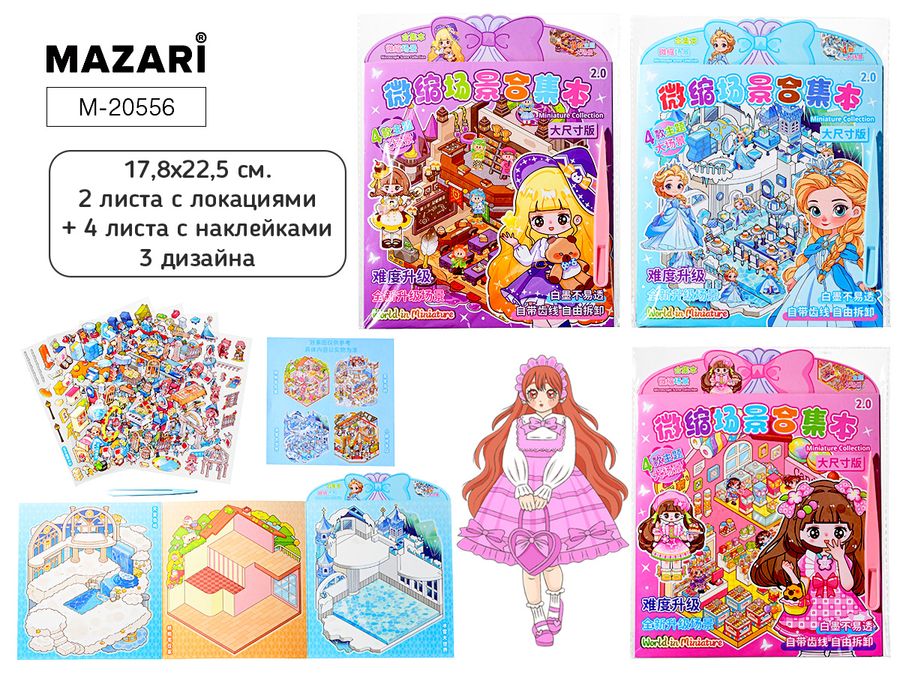 Альбом с наклейками РУМБОКС ДЕВОЧКИ, 17.8*22.5 см, 6 листов: 2 листа с локациями, 4 листа с наклейками, пинцет в комплекте, 3 дизайна, ОПП-упаковка