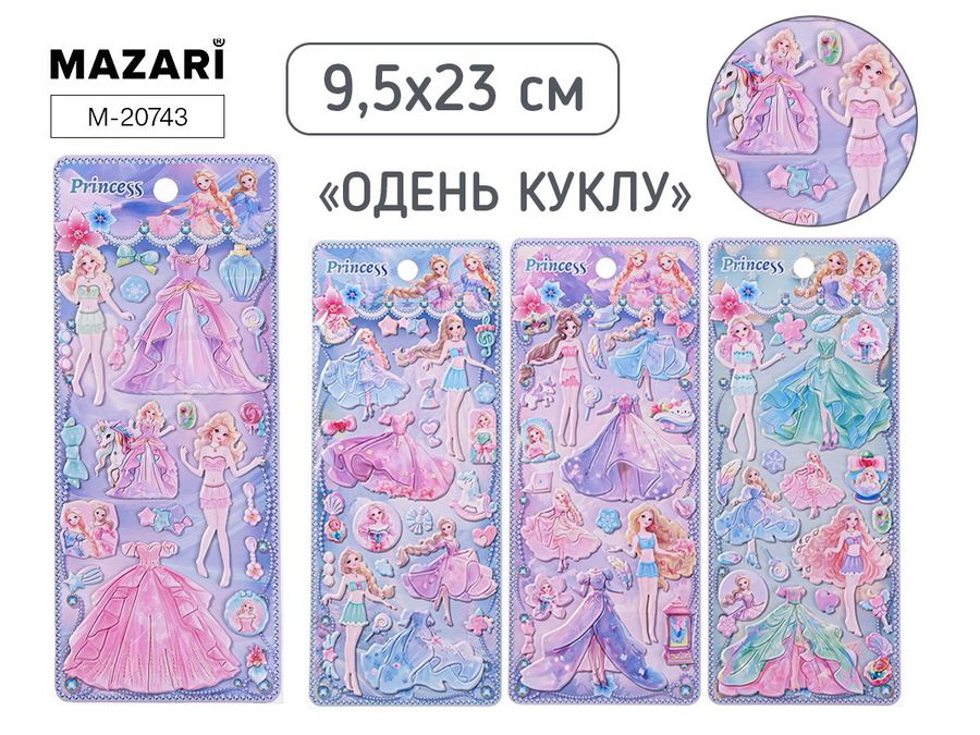 M-20743 Наклейки 100х230мм Одень куклу 4л ассорти 4 дизайна