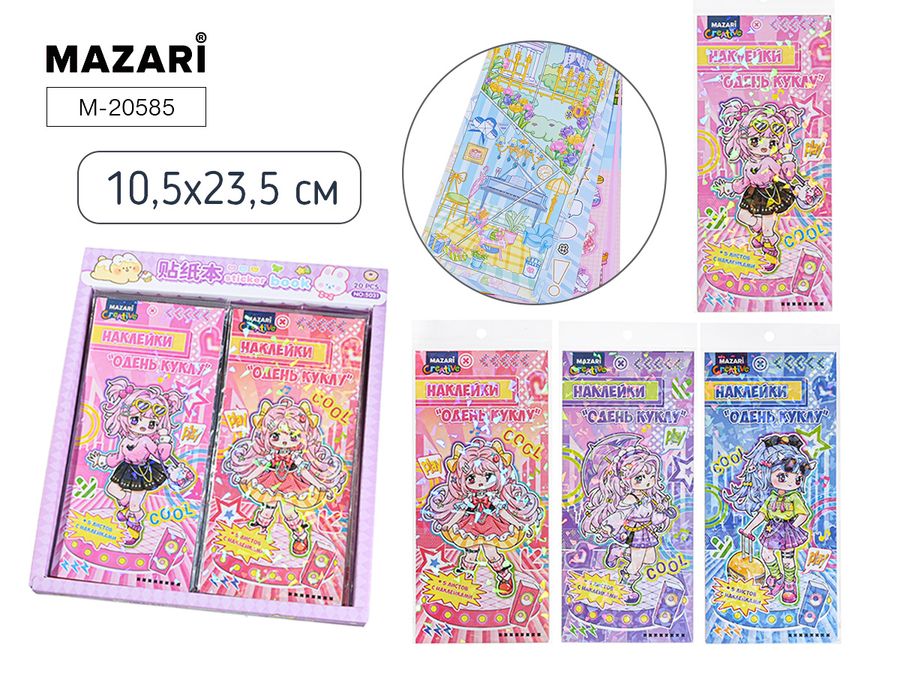 M-20585 Наклейки 105х235мм Одень куклу 5л ассорти 4 дизайна