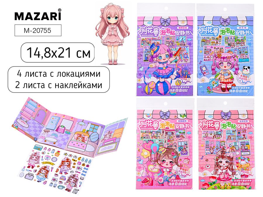 Наклейки РУМБОКС, 14.8*21см, 4 листа с локациями, 2 листа с наклейками, 4 дизайна в ассортименте, ОПП-упаковка