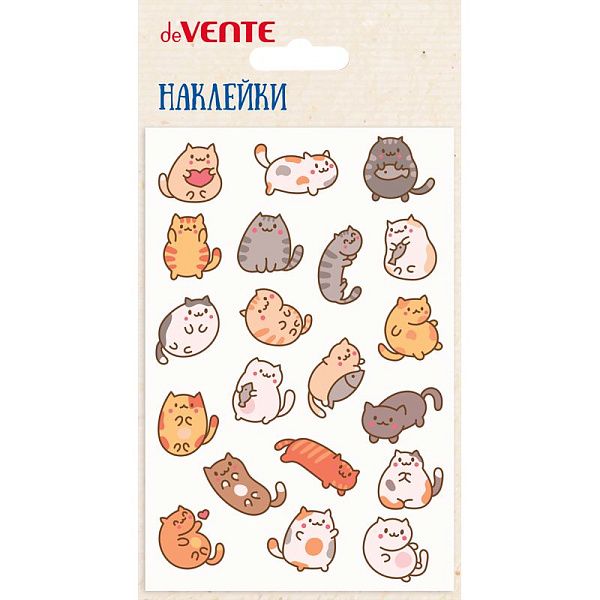 Наклейки мягкие "deVENTE. Fat kitten" карточки 10x15 см, puff, объемные, многоразовые, в пластиковом пакете с блистерным подвесом