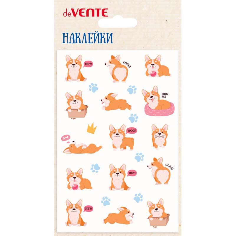 Наклейки мягкие "deVENTE. Корги" карточки 10x15 см, puff, объемные, многоразовые, в пластиковом пакете с блистерным подвесом