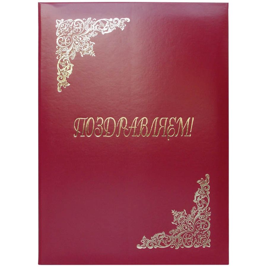 Папка адресная OfficeSpace серии «Поздравляем!» формата А4 предназначена для поздравления с важным событием. Изделие выполнено из прочного картона бордового цвета с покрытием из бумвинила. Обложка изделия украшена тиснением из фольги. Внутренний способ крепления документов – лента-ляссе. Размер товара: 220*310 мм. Папка выпускается в индивидуальной упаковке. • Формат: А4; • Материал обложки: бумвинил; • Тиснение: фольгой; • Способ фиксации документов: лента-ляссе; • Цвет: бордовый.