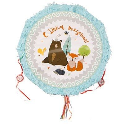 Пиньята - мексиканская по происхождению игра для взрослых и детей. Изготавливается из папье-маше с украшениями. Пиньяту наполняют ра зличными угощениями и игрушками (до 900гр наполнителя) и подвешивают к потолку или на дерево. В отличие от традиционной пиньяты, пиньяту с лентами разбивать не надо. Нужно по очереди тянуть за специальные веревочки, только одна из которых раскроет пиньяту. Этот вид подходит для игры в маленьких помещениях. Также пиньята может служить оригинальным украшением интерьера. Размер пиньяты: 46 х 46 х 10 СМ