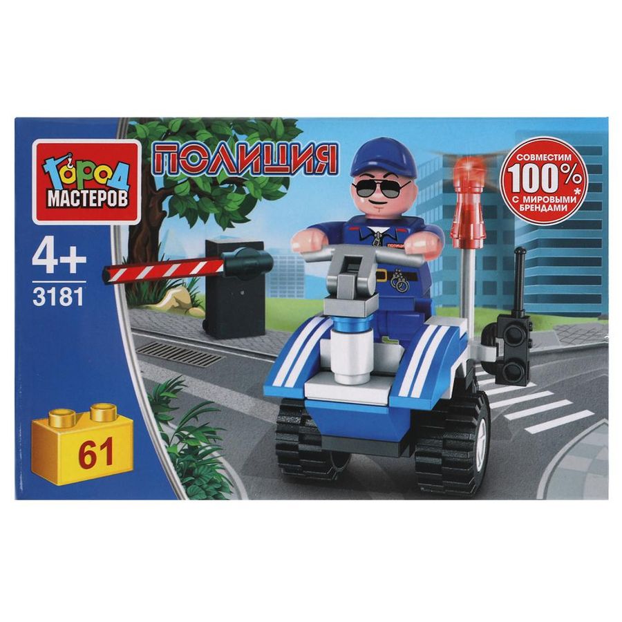 Конструктор «Полицейский на гироскутере» из серии «Полиция» ТМ «Город мастеров» понравится маленьким защитникам правопорядка. Особенности и комплектация: - 61 деталь - фигурка - совместим с моделями конструкторов мировых брендов - все детали легко и плотно соединяются между собой С помощью этого занимательного конструктора ваш ребёнок может собрать реалистичную модель полицейского гироскутера. Набор вдохновит малыша на новые увлекательные сюжеты для игр и станет гордостью его игрушечной коллекции. Собирая конструктор ТМ «Город мастеров», ребёнок развивает: - мелкую моторику - мышление - внимание - усидчивость - логику Размер упаковки: 15 x 9 x 5 см. Материал: пластмасса. Рекомендовано детям от 4-х лет.