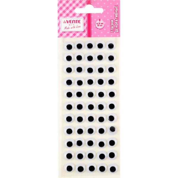 Глазки декоративные "deVENTE" круглые пластиковые, цвет черный, 10 мм, 55 шт в пластиковом пакете с блистерным подвесом