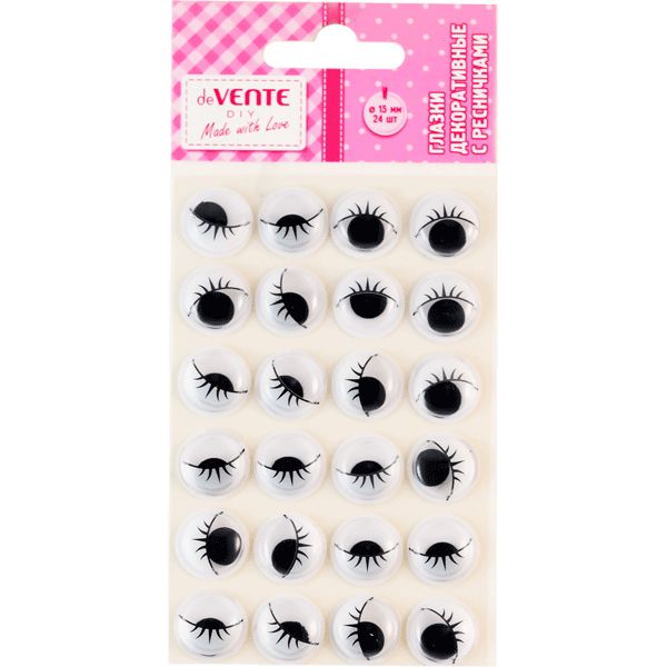 Глазки d=15мм 24шт с ресницами deVENTE 8001040