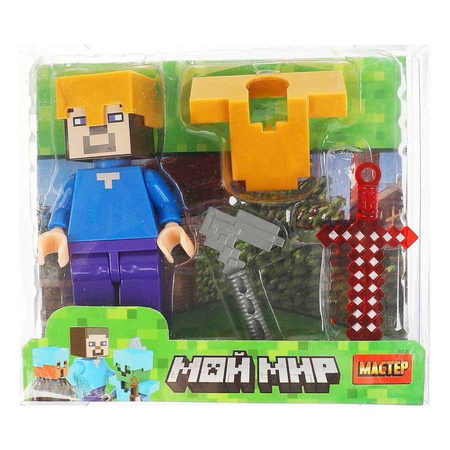 Конструктор-фигурка «Мой мир» ТМ «Мастер» понравится маленьким поклонникам популярной компьютерной игры. Особенности и комплектация: - фигурка - 2 вида оружия - доспехи - совместим с моделями конструкторов мировых брендов Интересная фигурка с аксессуарами станет прекрасным дополнением для игр с любимым конструктором и вдохновит ребёнка на новые игровые сюжеты. Размер упаковки: 26 x 17 x 4 см. Материал: пластмасса. Рекомендовано детям от 4-х лет.