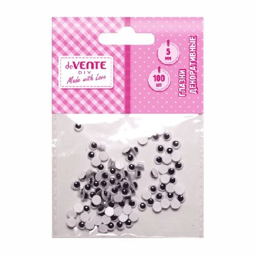 Глазки декоративные "deVENTE" круглые пластиковые на клеевой основе, черные, 5 мм, 100 шт в пластиковом пакете с блистерным подвесом.