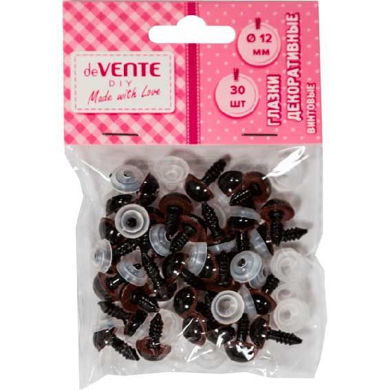 Глазки d=12мм 30шт винтовые с фиксатором коричневые deVENTE 8001326