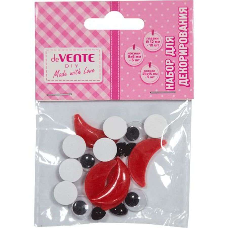 Набор для декорирования "deVENTE. Глазки. Носики. Ротики" пластиковый, самоклеящийся, 20 шт, глазки 12мм, носики 8x6 мм, ротики 25x15 мм, в пластиковом пакете с блистерным подвесом.