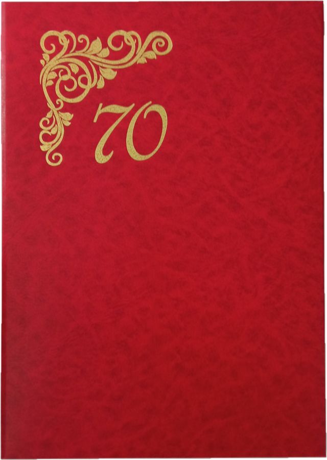 Адресная папка мягкая формата А4 изготовлена из бумвинила красного цвета. Внутренние вклейки — белая офсетная бумага. На обложку методом тиснения золотой фольгой нанесена надпись. Адресная папка подходит для поздравлений, хранения документов.