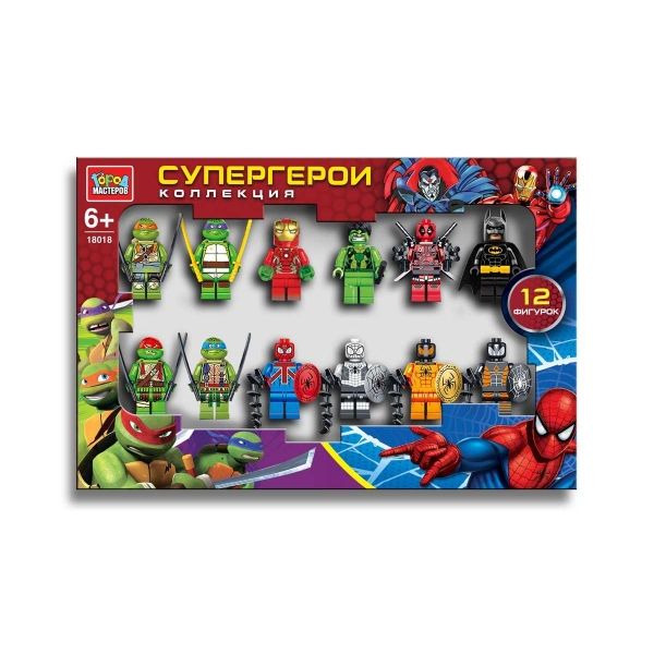 Набор фигурок «Супергерои» ТМ «Город мастеров» – отличный подарок для маленького фантазёра – любителя конструирования. Особенности и комплектация: - 12 фигурок - оружие, аксессуары и подставки в комплекте - высота фигурки ~4,5 см - совместимы с моделями конструкторов мировых брендов Яркий набор фигурок в виде популярных супергероев станет прекрасным дополнением для игр с любимым конструктором. Такой набор вдохновит детей на новые увлекательные сюжеты и поможет разнообразить их игры. Размер: 26 х 17 х 4 см. Материал: пластмасса. Рекомендовано детям от 6-ти лет.