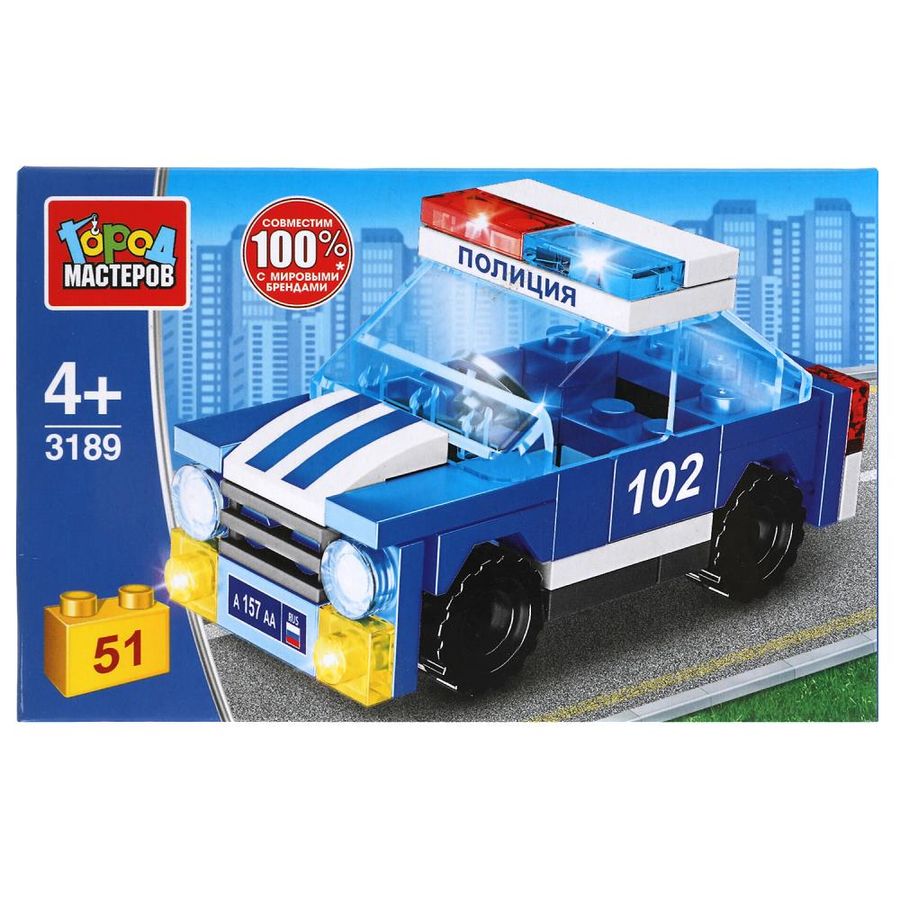 Конструктор «Полицейская машина» ТМ «Город мастеров» понравится маленьким героям. Особенности и комплектация: - 51 деталь - совместим с моделями конструкторов мировых брендов - все детали легко и плотно соединяются между собой С помощью этого занимательного конструктора ваш ребёнок может собрать реалистичную модель полицейской машины. Набор вдохновит малыша на новые увлекательные сюжеты для игр и станет гордостью его игрушечной коллекции. Собирая конструктор ТМ «Город мастеров», ребёнок развивает: - мелкую моторику - мышление - внимание - усидчивость - логику Размер упаковки: 15 x 9 x 5 см. Материал: пластмасса. Рекомендовано детям от 4-х лет.