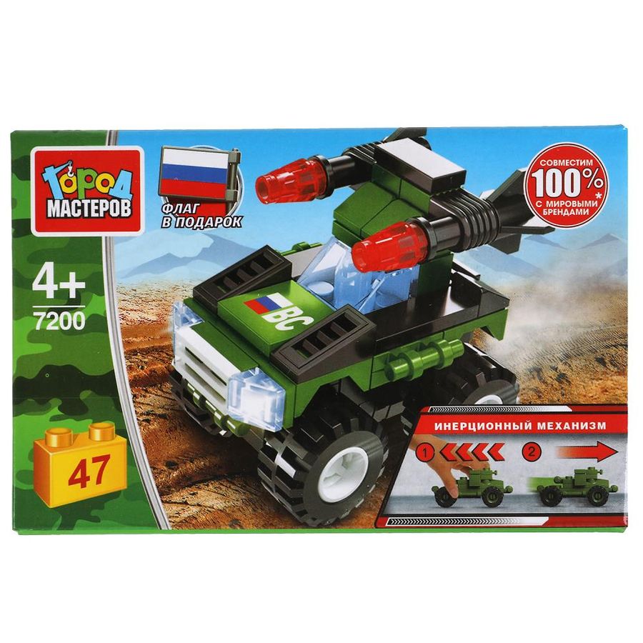 Конструктор «Ракетная установка» ТМ «Город мастеров» понравится маленьким героям. Особенности и комплектация: - 47 деталей - флаг в подарок - инерционный механизм (поставьте установку на ровную поверхность, потяните за корпус назад, отпустите - и она тут же поедет вперёд) - совместим с моделями конструкторов мировых брендов - все детали легко и плотно соединяются между собой С помощью этого занимательного конструктора ваш ребёнок может собрать реалистичную модель ракетной установки. Набор вдохновит малыша на новые увлекательные сюжеты для игр и станет гордостью его игрушечной коллекции. Собирая конструктор ТМ «Город мастеров», ребёнок развивает: - мелкую моторику - мышление - внимание - усидчивость - логику Размер упаковки: 15 x 9 x 5 см. Материал: пластмасса. Рекомендовано детям от 4-х лет.