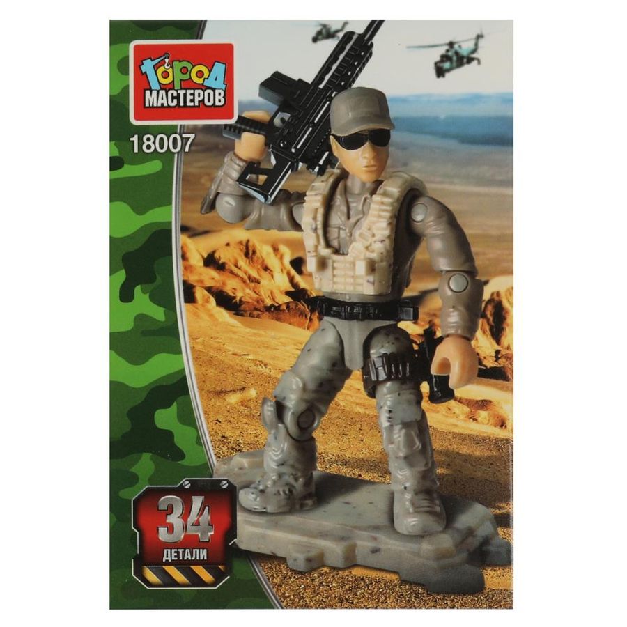 Конструктор «Солдат» ТМ «Город мастеров» станет прекрасным подарком для маленького героя. Особенности и комплектация: - 34 детали - все детали легко и плотно соединяются между собой - совместим с моделями конструкторов мировых брендов С помощью этого занимательного конструктора ребёнок может собрать реалистичную фигурку солдата с оружием. Набор вдохновит малыша на новые увлекательные сюжеты для игр и станет гордостью его игрушечной коллекции. Собирая конструктор ТМ «Город мастеров», ребёнок развивает: - мелкую моторику - мышление - внимание - усидчивость - логику Размер упаковки: 15 x 9 x 5 см. Материал: пластмасса. Рекомендовано детям от 4-х лет.